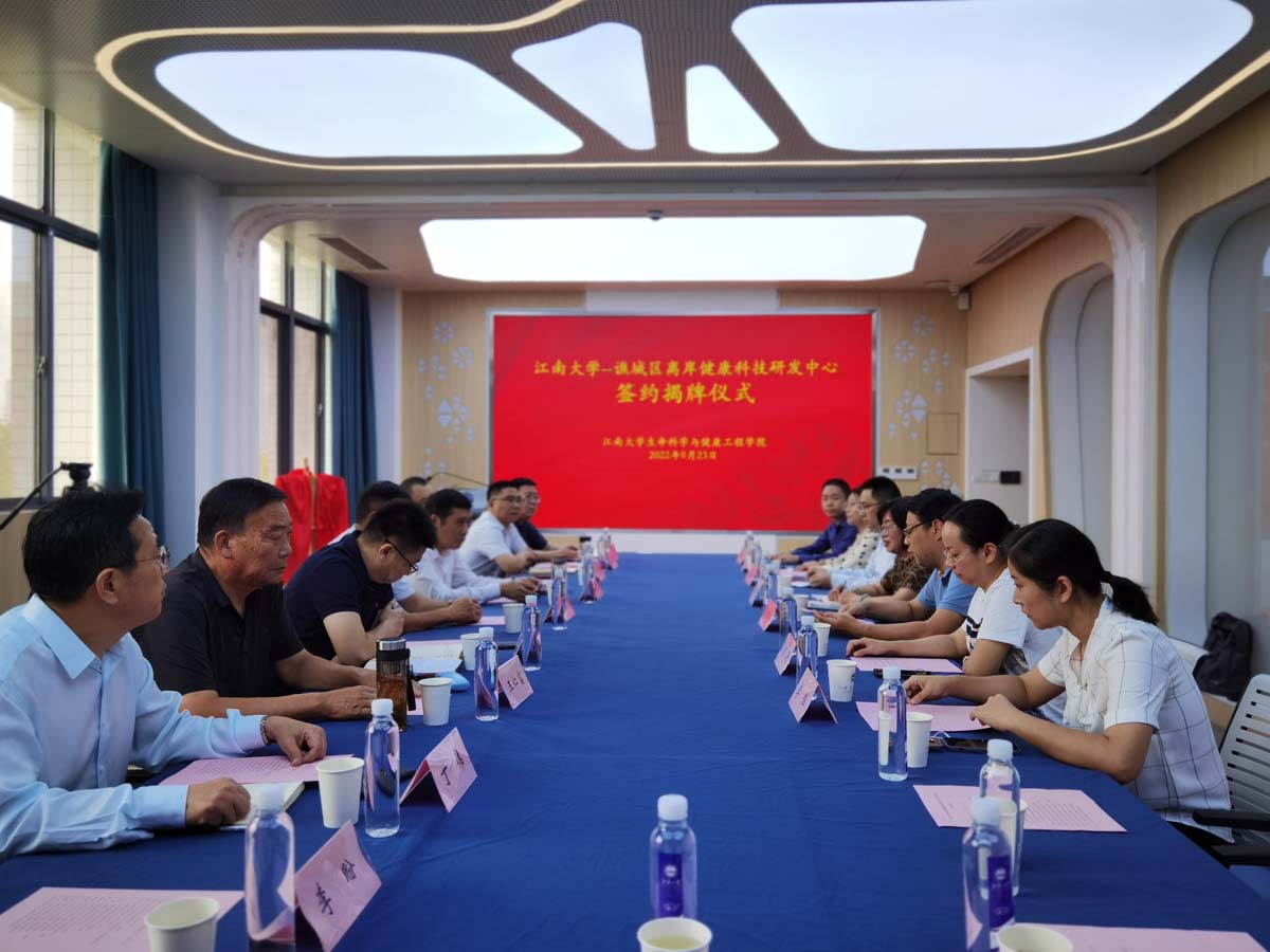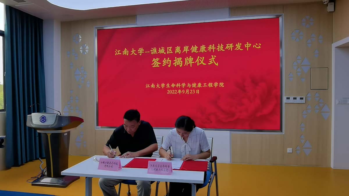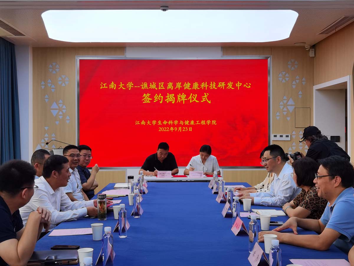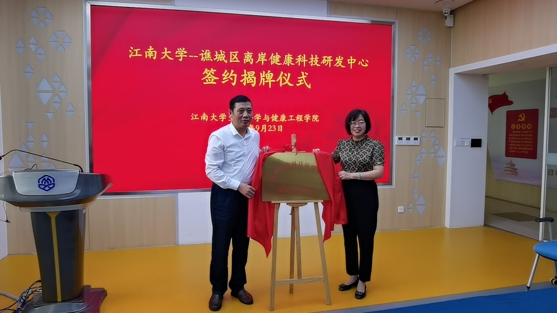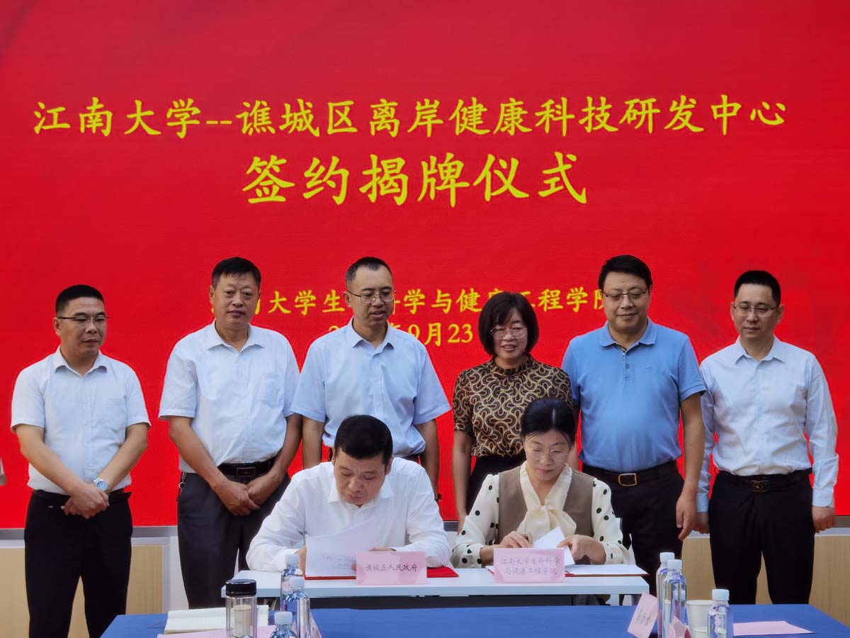9月23日上午,谯城(江南大学)离岸健康科技研发中心在江南大学生命科学与健康工程学院正式揭牌。谯城区委副书记、区长宋保众率队出席活动并签约、揭牌。江南大学生命科学与健康工程学院党委书记陈霞雯、院长陈敬华,亳州市农业农村局副局长王光凯出席仪式。